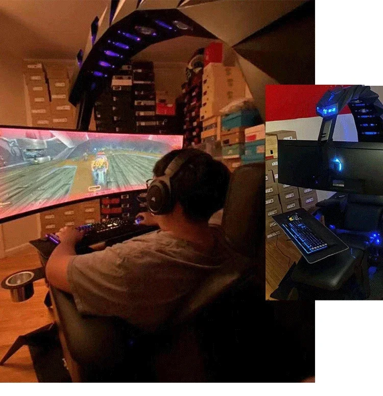 This is our new model for 2020! It has the shape of Scorpion King and super comfortable full supine seat, up to 170 degrees, andone key operation of power on controller. It can support one 22-49 inch ultra wide display or three 22-27 inch displays or five22-27 inch displays, and is equipped with a reconstructed HDMI / DP cable to facilitate the connection between the display and thecomputer. The large keyboard is manually on / off, and the two armrests are well padded. You can rotate on / off to get in andoutquickly. Two people are easy to get along withInstall in 1-2 hours!